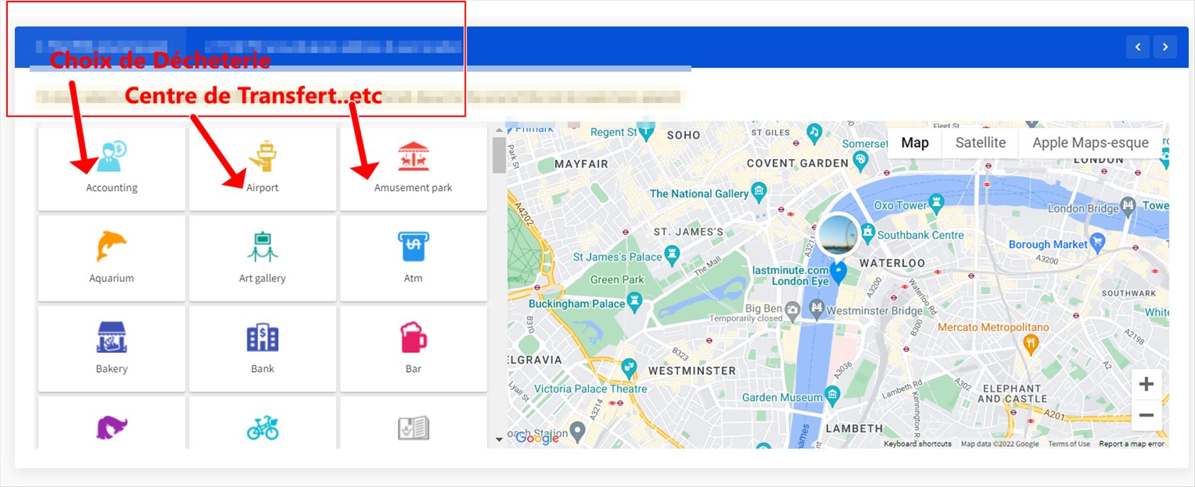 1 ° Possibilité de choisir directement le centre d'intérêt ( Ex...déchetterie)