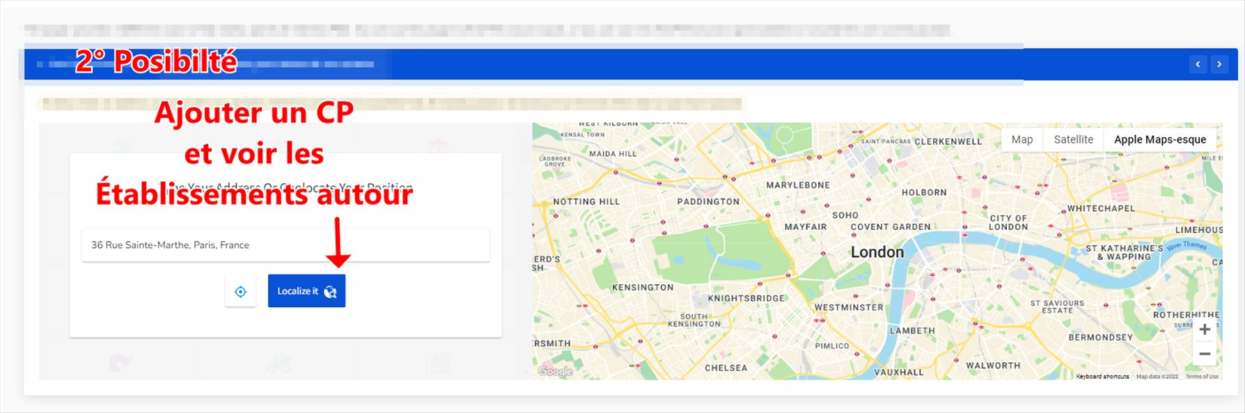 2° Possibilité de choisir les emplacements et observer les centres aux alentours